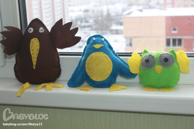 На этом сюрпризы не закончелись, сшила ей ворону,пингвина и сову. Каждое утро начиналось с новой птички. Кому нужны выкройки, могу скинуть.