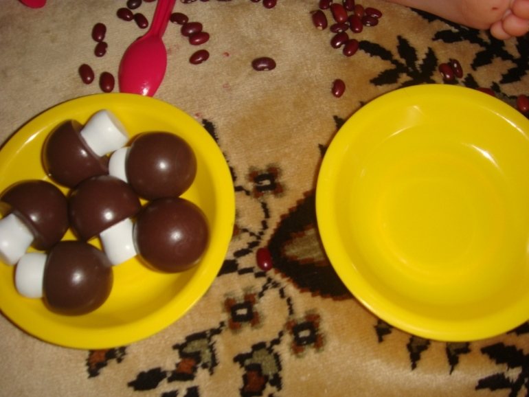 В процессе игры мама( т.е я) пыталась дать понятия "много - один - ничего".