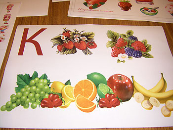 Еще я сделала страничку, где надо было назвать букву, на которую начинается слово "клубника", а также найти и сосчитать сколько клубничек на каждой картинке и сколько их всего на странице.