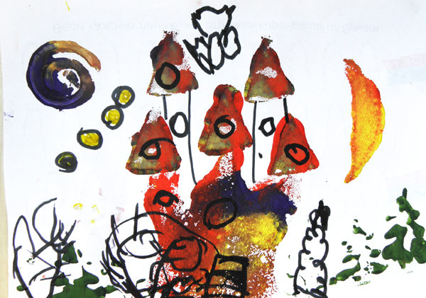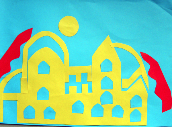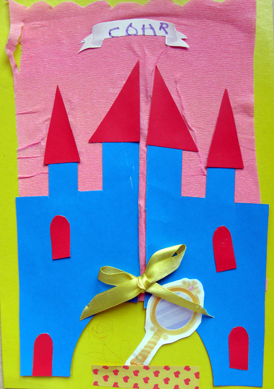 Замок злой королевы сделала с помощью штампов (порезала на разные формы губку для мытья) и красок/фломастеров: