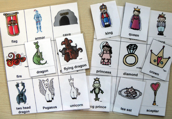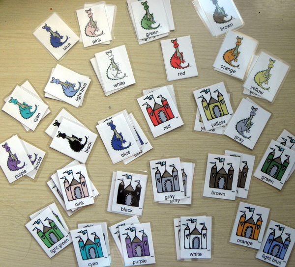Всевозможные карточки по теме - драконы, замки по цветам, лото с тематической лексикой