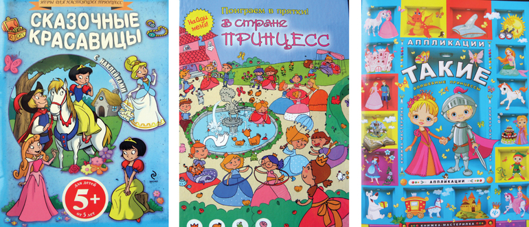 - сказочные принцессы из мультиков (имя каждой Соня сама подписала),
