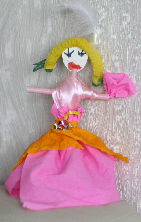 Вот такую принцессу придумали из трубочек, бумаги и ленты: