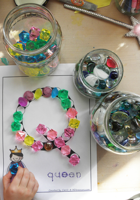 Вот так учили слово Queen - королева, выкладывая его нашими «изумрудами» из королевской казны))))