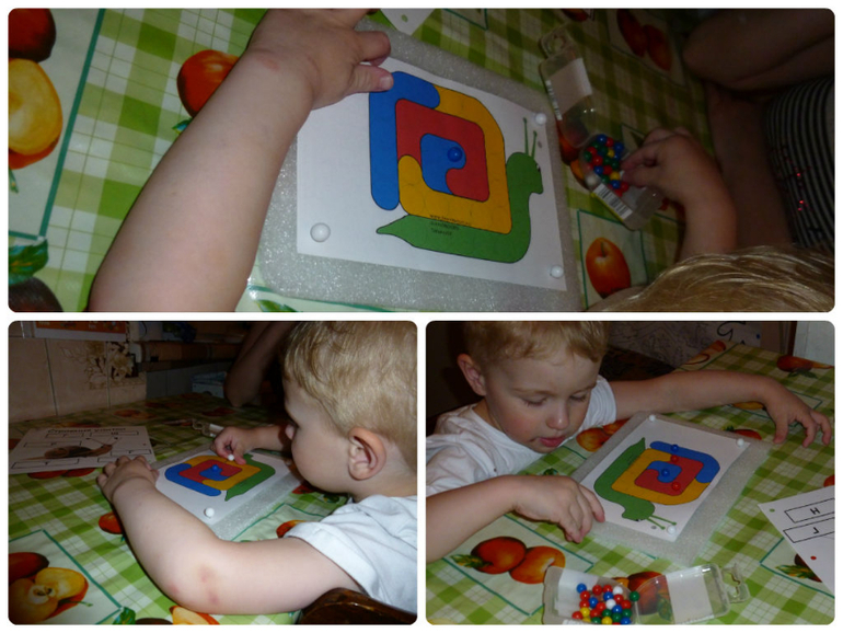 Вечером перед сном у нас начался традиционный блок "Нам бы что ни делать, абы не спать" то есть задания. Любимые задания с кнопками для задора - это мы любим. И весело, и мама не напрягает вопросами )))