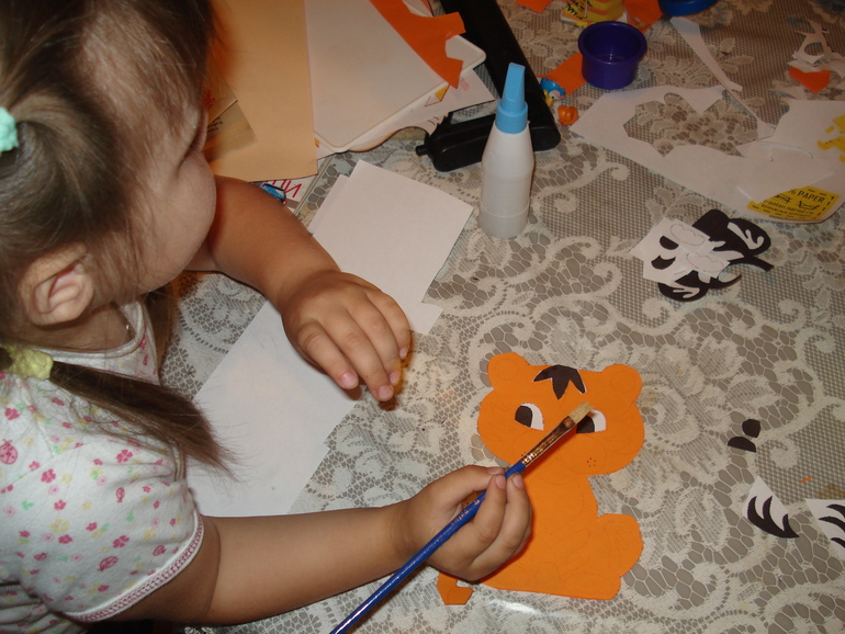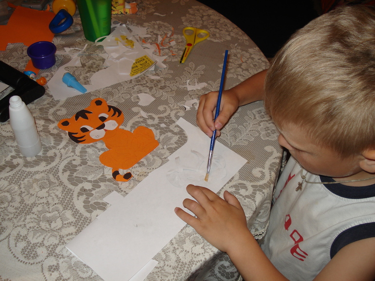 9. Ну и без аппликации конечно не обошлись. Мы с Иваном вырезали детали, клеили все вместе