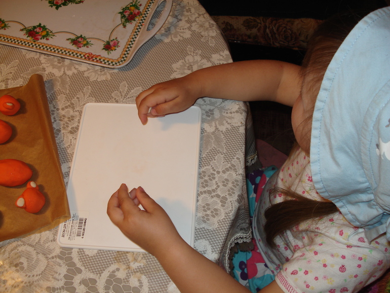 7. Далее мы творили. Для начала я решила полепить с ними из соленого теста. Пластелин не очень люблю, так как поделки недолговечны.
