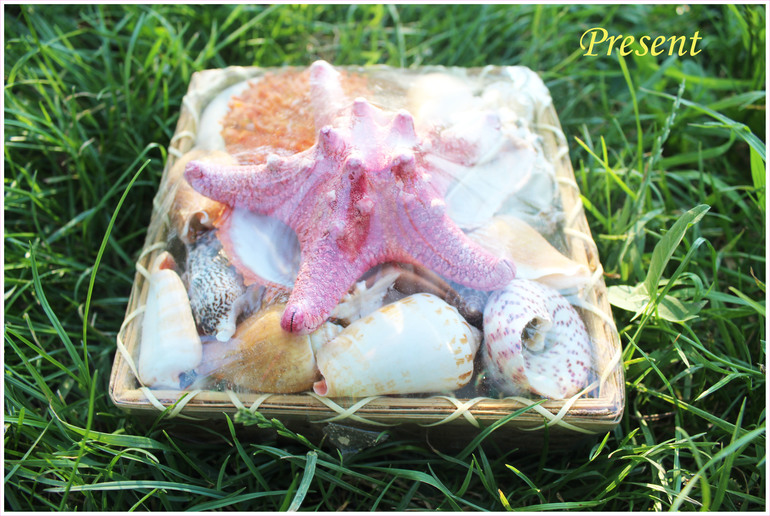 У нас есть подарок - вот такой набор ракушек и еще немного песочка с Азовского моря, песочек этот удивительный - он состоит из измельченных раковин моллюсков.