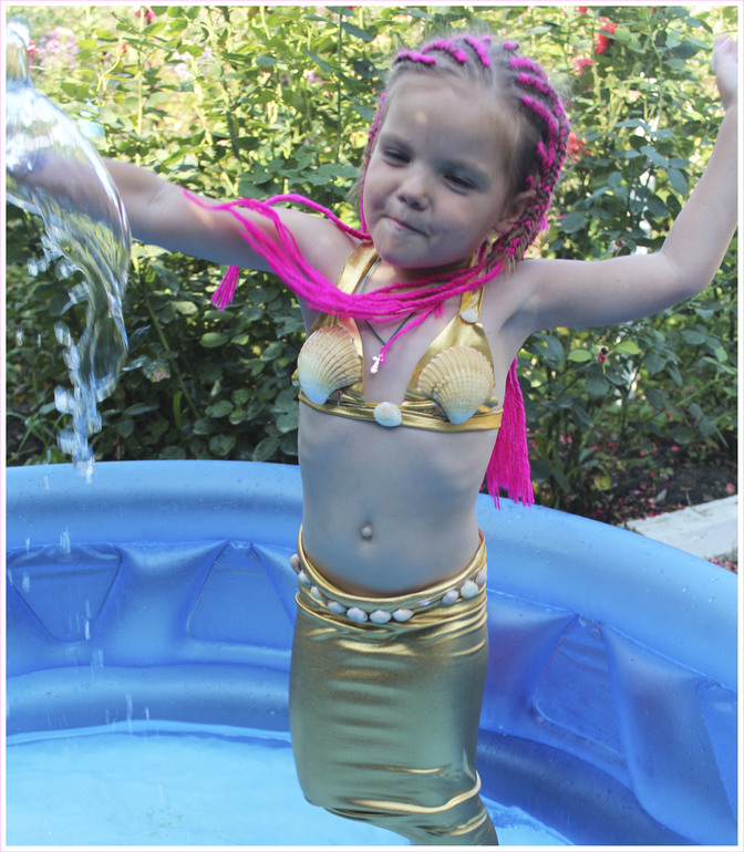 Возвращаясь к костюму русалочки! Не могла же отказать своей девочке в таком образе и вот он )) Алиса ходит так купаться в бассейн.