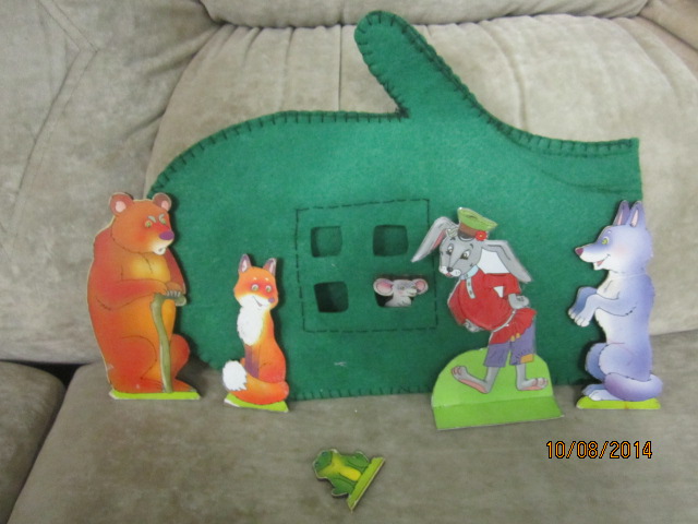 4. Разыграли сказку "Рукавичка", ведь рукавичка была пусть сказочным, но тоже домом для зверей: