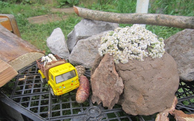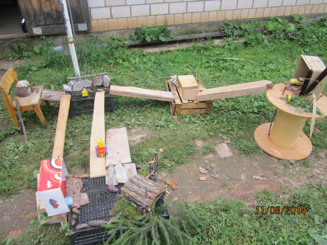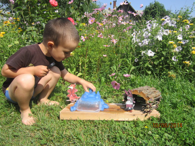 11. Ну и на последок...дома построенные нами собрали в городок. В городке наделали дорог, посадили деревья, сделали жителей из шишек и пластилина и весело играли машинками: