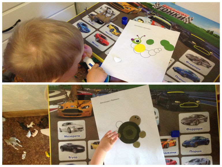 - очень много делали аппликаций и теперь Митя с удовольствием все клеит и просит еще и еще аппликаций;