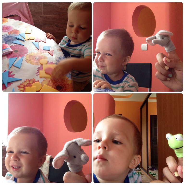 - Митюша отлично разбирается в фигурах, называет "туу" - круг, "таа" - квадрат, "пе" - трапеция, "мими" - ромб, "ззда" - звезда, "ловал" - овал - называть начал в основном благодаря тактильной геометрической книги;