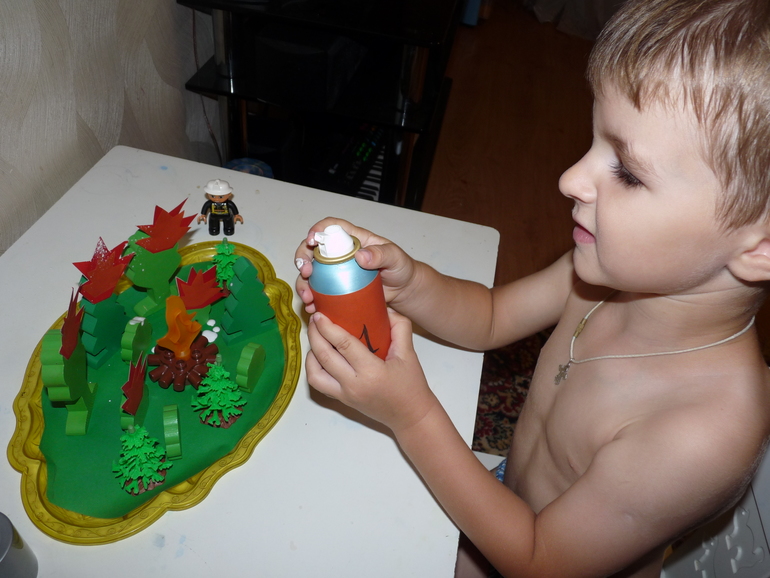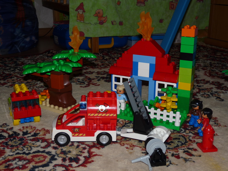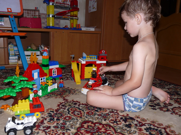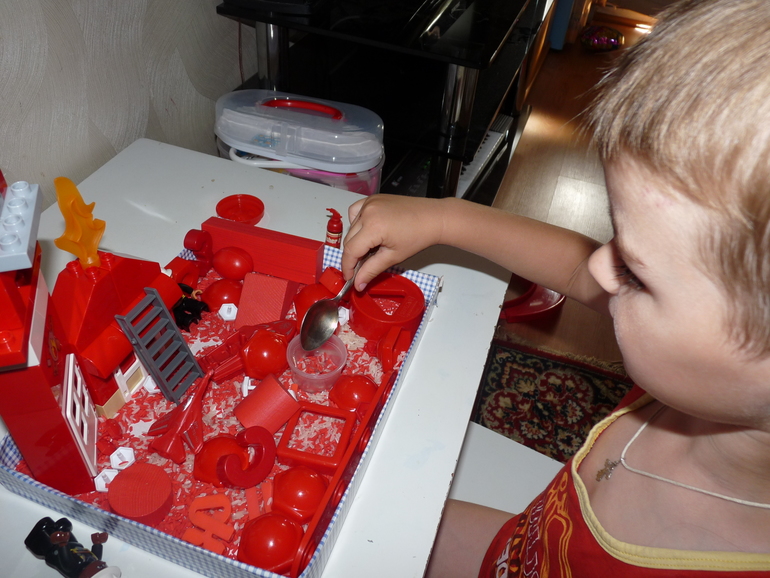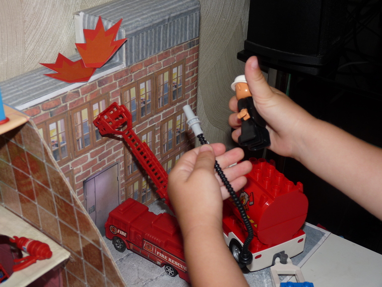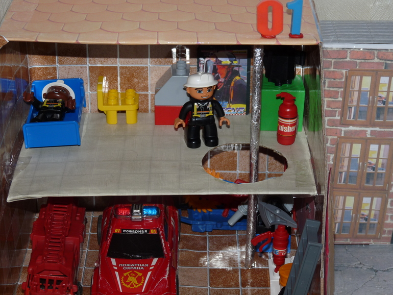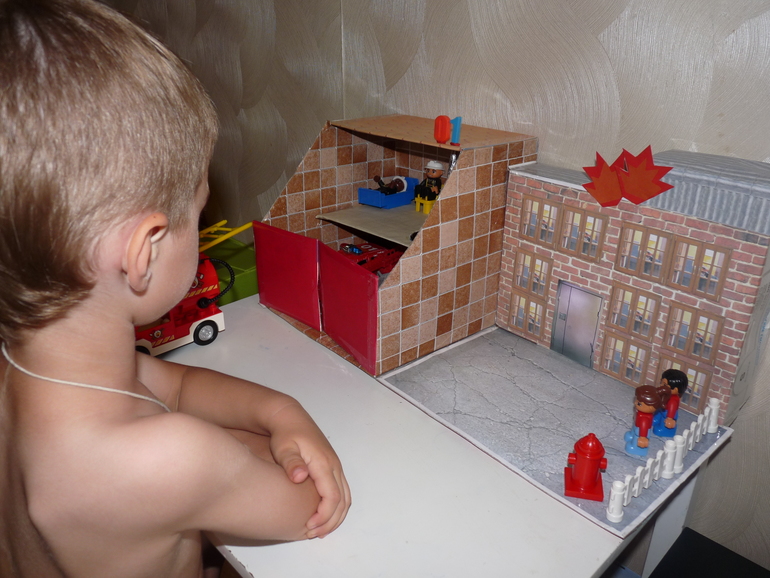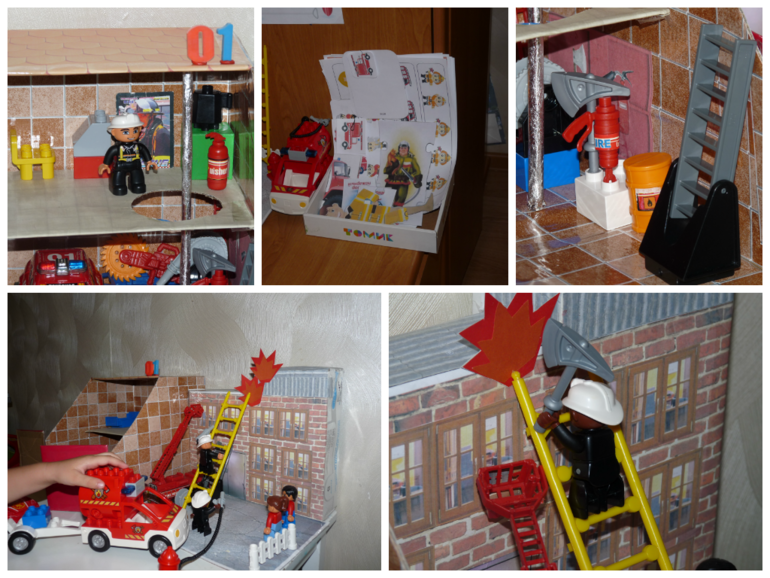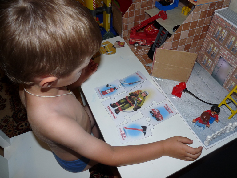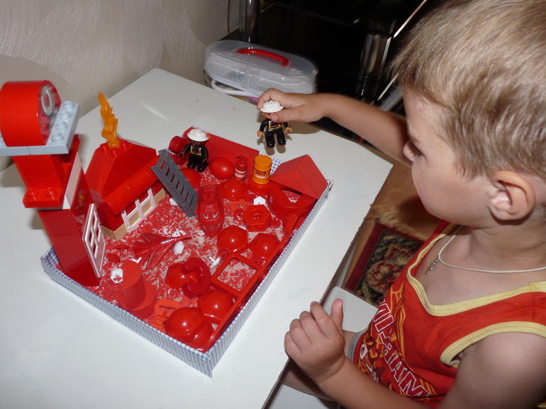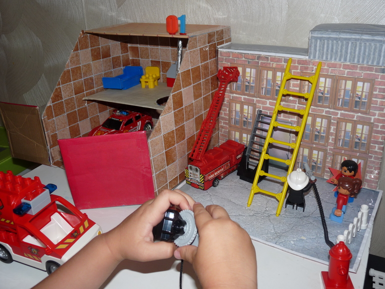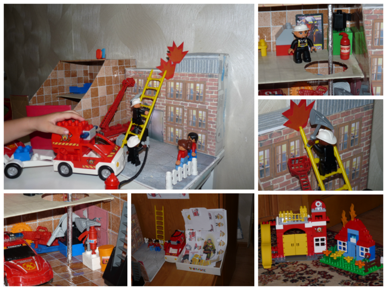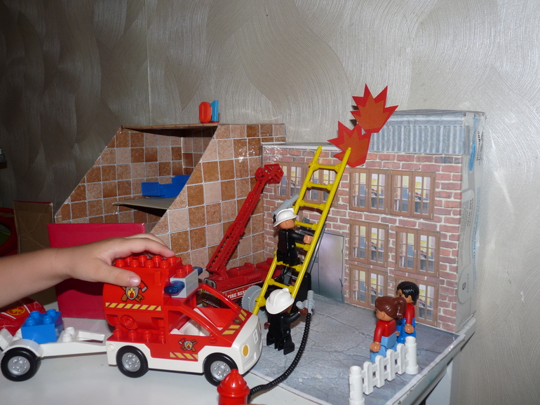 И пошли опять тушить дома, построили город с пожарной станцией и играли,играли, придумывали сюжеты.