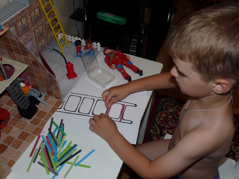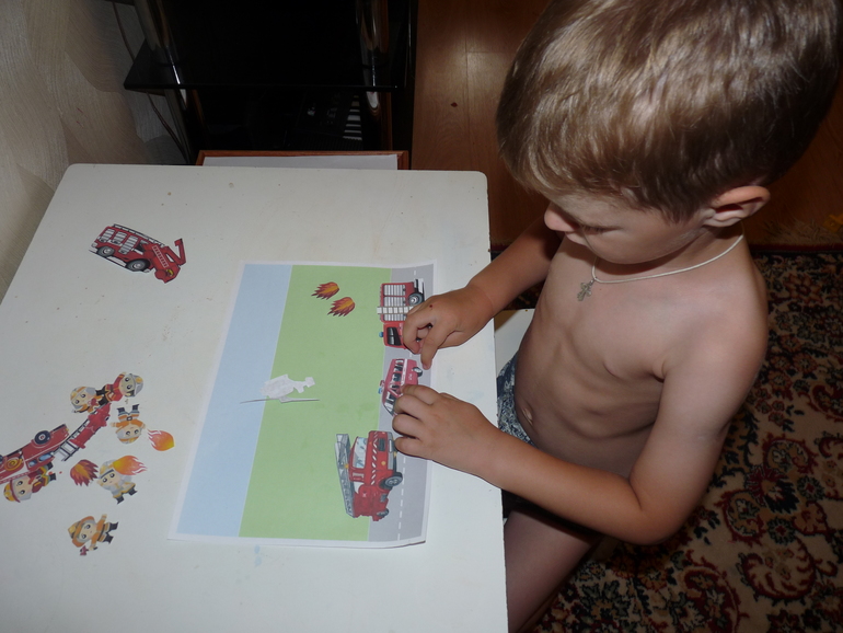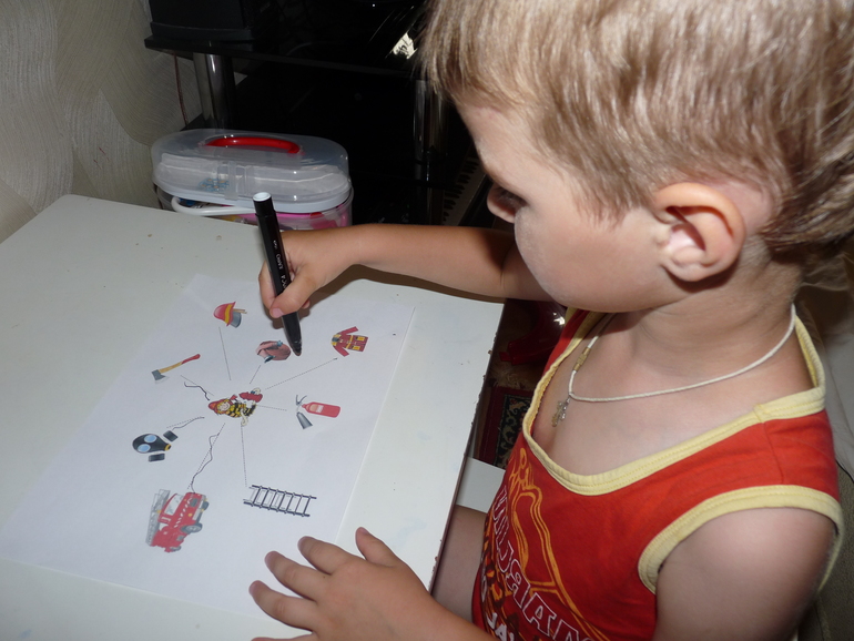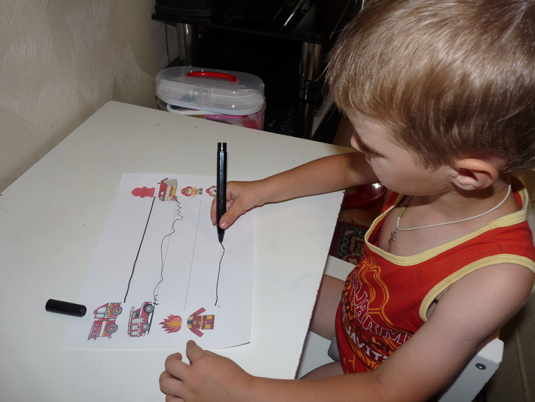Кое как уговорила приступить к печатным занятиям, ведь пожарные должны быть умными, обладать хорошей смекалкой.