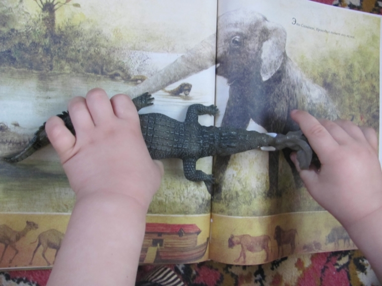Играли по книгам. Это инсценировка Киплинга "Почему у слоненка длинный хобот"