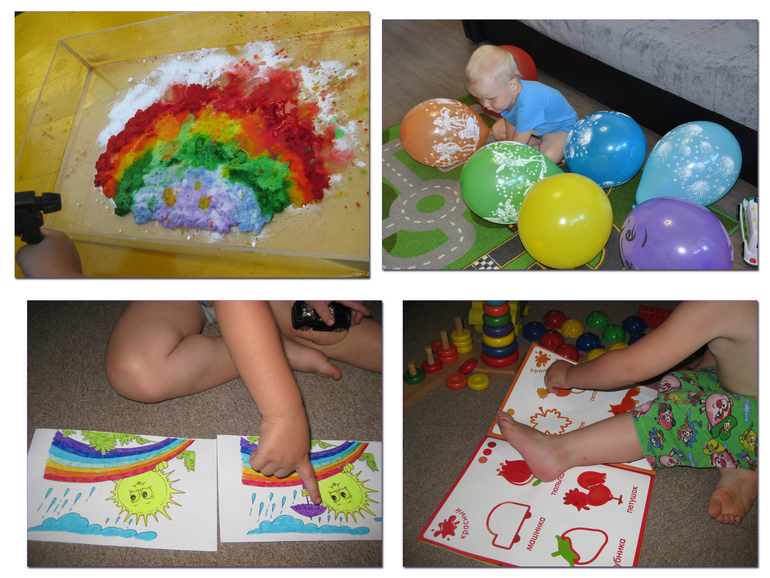 Вообще цвета Артём знает, не было целью заучить именно цвета радуги, просто поиграли в цветные игры.