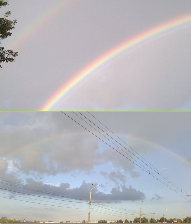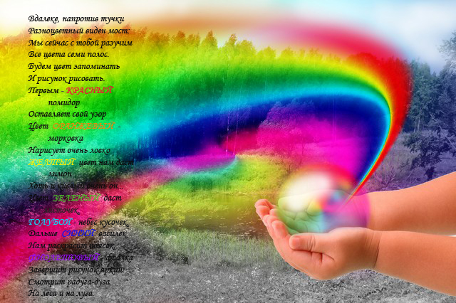 За день до наших занятий, когда мы гуляли и попали под небольшой дождик, как по заказу появилась радуга. Я, кажется, радовалась больше чем Артём. Получился наглядный урок естествознания.