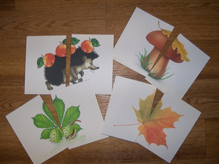 Еще показала простейшие паззлы из 2-х половинок(тут и тут). Вначале показала как собрать все картинки, что состоят из двух частей, что получится если собрать их вместе и если разделить.