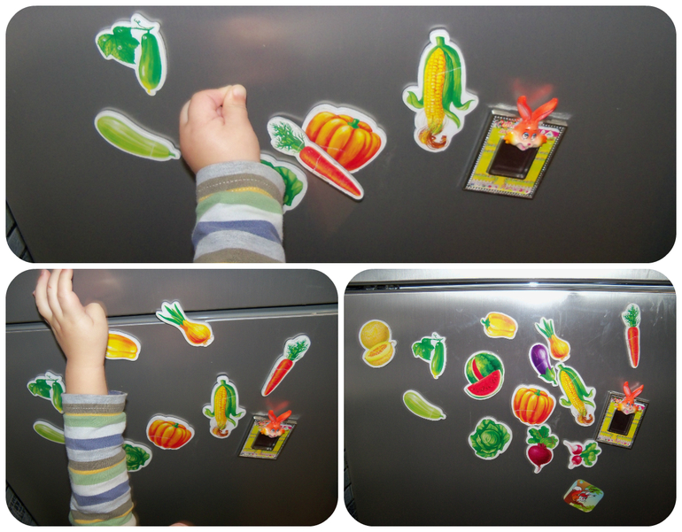 Вечером собрали урожай из магнитов и кормили зайчика. Рисовать не захотел, тесто для лепки не просил. И вообще к творчеству был нерасположен.