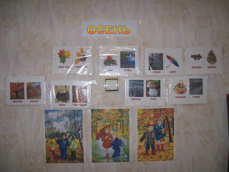 Повесили картинки и карточки на стену, показывал девочек и собачку