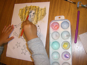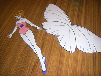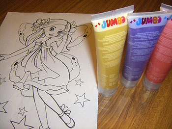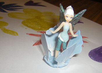 После раскрасили феечке крылышки теми же блестящими маркерами и приклеили их куколке и после - на картинку
