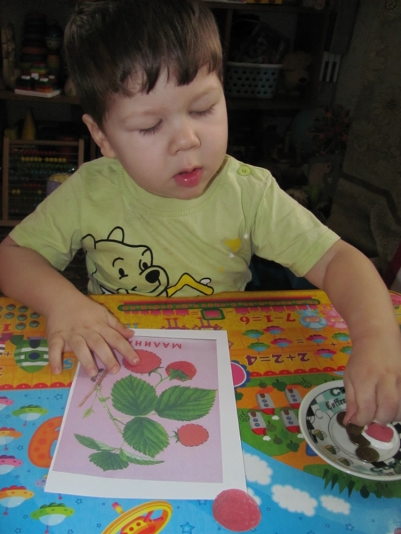 Затем был день ягод. С этого дня мало фотографий. Вообще ягоды впечатлили Дениса слабо)) Так же посмотрели карточки и плакат. А потом: