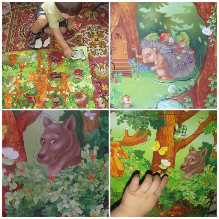 Собирали большой пазл с животными и искали там ягоды. Нашли))