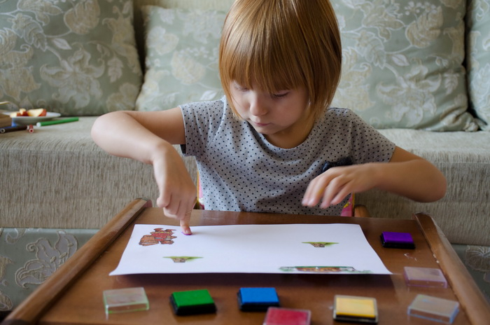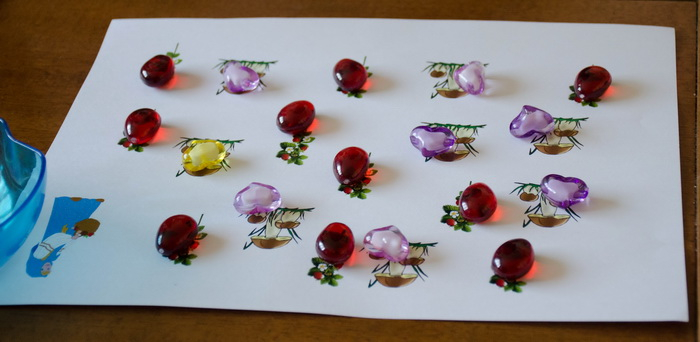 Лиза помогала Машеньке корзинку наполнять - ягодки красными камушками, грибочки сердечками закрывала.