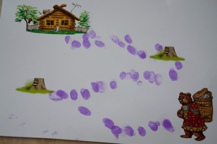 А в той избушке жил большущий медведь. Только его тогда дома не было: он по лесу ходил.