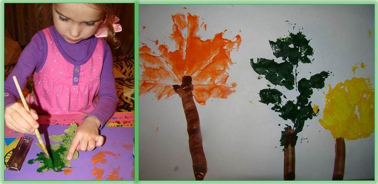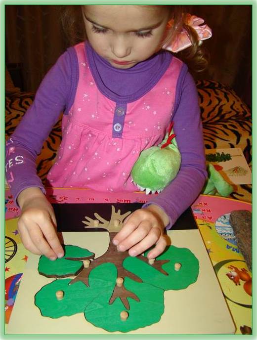 В сентябре мы с Дашей несколько дней посвятили изучению деревьев: пытались запомнить деревья, растущие в нашей местности, знакомились с необычными деревьями, делали поделки, играли, занимались.