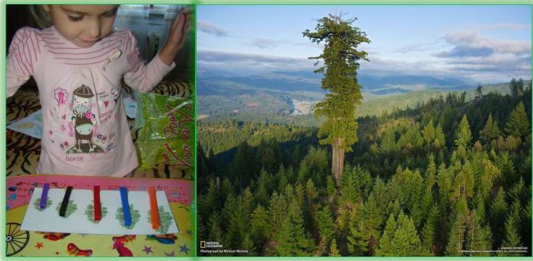 Ещё Дашу очень впечатлила секвойя - самое высокое дерево в мире! Смотрели картинки, мерили секвойи при помощи палочек - находили, самую высокую, пониже и т.п.