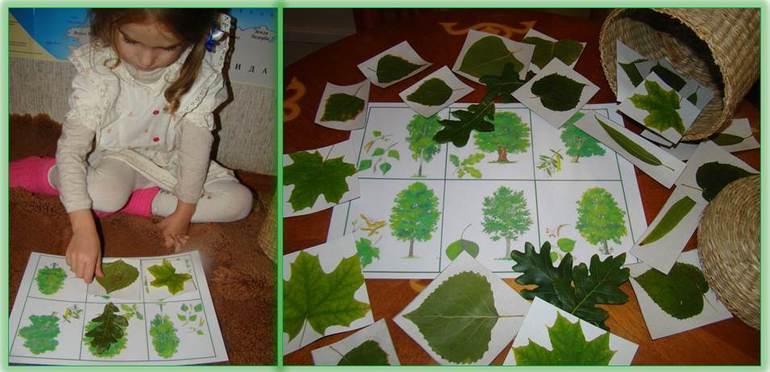 Также пытались запомнить деревья, которые растут в нашей местности, рассматривали карточки: