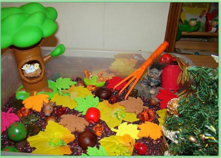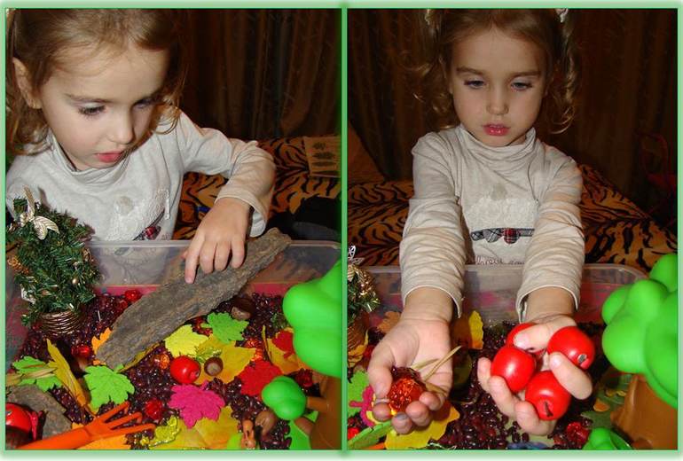 Поиграли, поперебирали содержимое коробочки, а потом рассмотрели строение дерева: ствол, корни, ветви, листва - крона, кора.