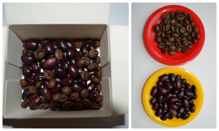 Сначала Золушка попросила отобрать кофейные зерна от фасоли, пока она делает остальную работу по приказу мачехи.