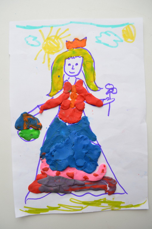 Еще сделали Золушке запасное платье(я рисовала принцессу и замазала волосы и корону - остальное все дочка)