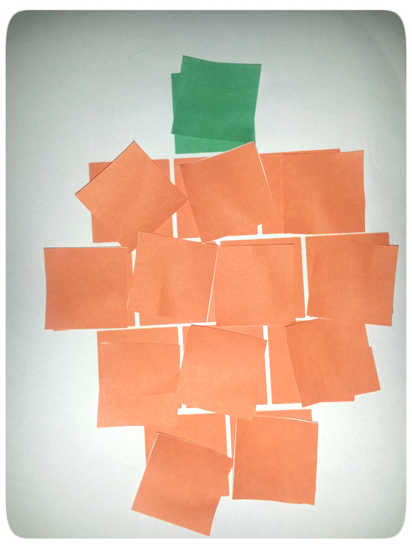 - Выложи цветные квадратики на шаблон тыквы