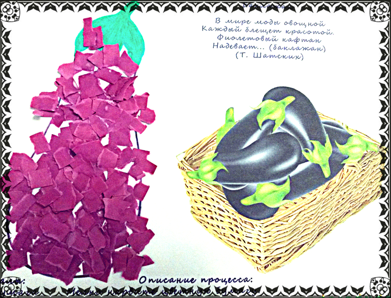 - Баклажан: кусочки цветной бумаги + ПВА