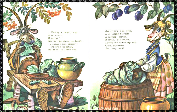 - Стих Алексея Крылова про козла, который «сторожил» капусту, обсудили, посмотрели, как выглядит козёл, сравнили с козой, поблеяли))