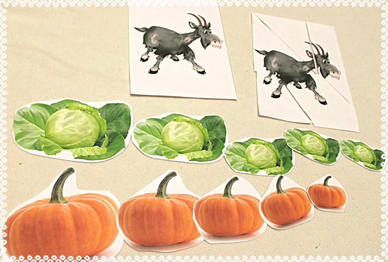- «Покормили» козликов: Варя разложила перед ними капусту и тыкву