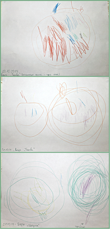 Тыквы (перед ней лежала картинка с тыквами с карандашными заплатками)