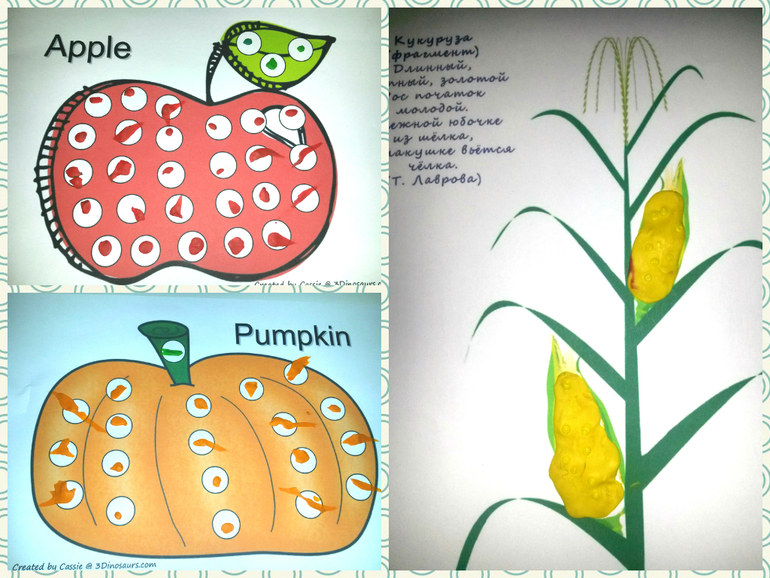 - Пластилиновые заплатки для яблока и тыквы