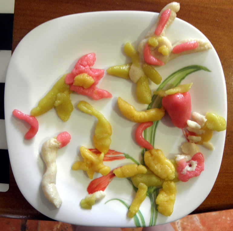 До кучи полепила марципановые фигурки - отличная замена пластилину, тем более потом еще и съесть можно)))