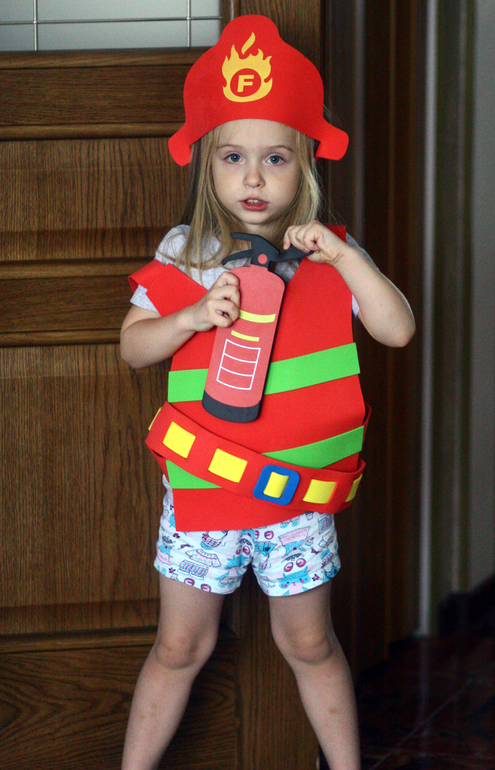 Никого из знакомых пожарников нет, зато есть костюм! Так что в пожарников тоже играла)))