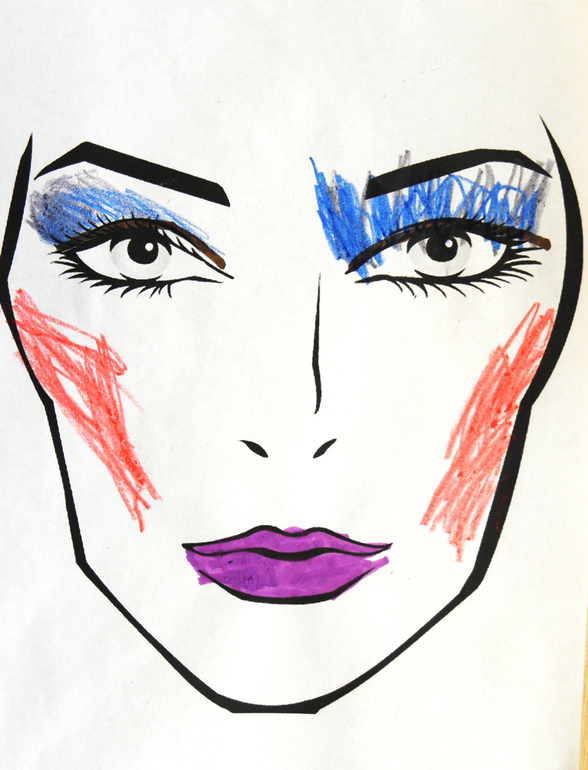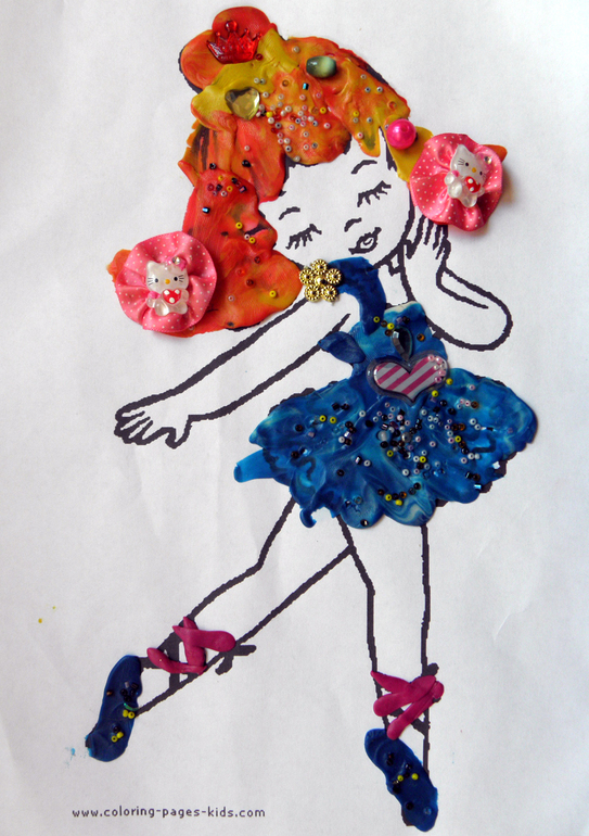 Вот и предложила ей придумать свои образы, скачала заготовки - лица, Соня сама выдумывала и красила блестками/фломастерами, карандашами, я ей только подсказывала, какие линии куда проводить.
