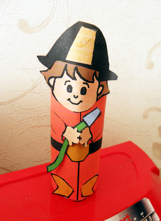 Вот такой напарник появился (рулон и сверху наклееный шаблон пожарника):