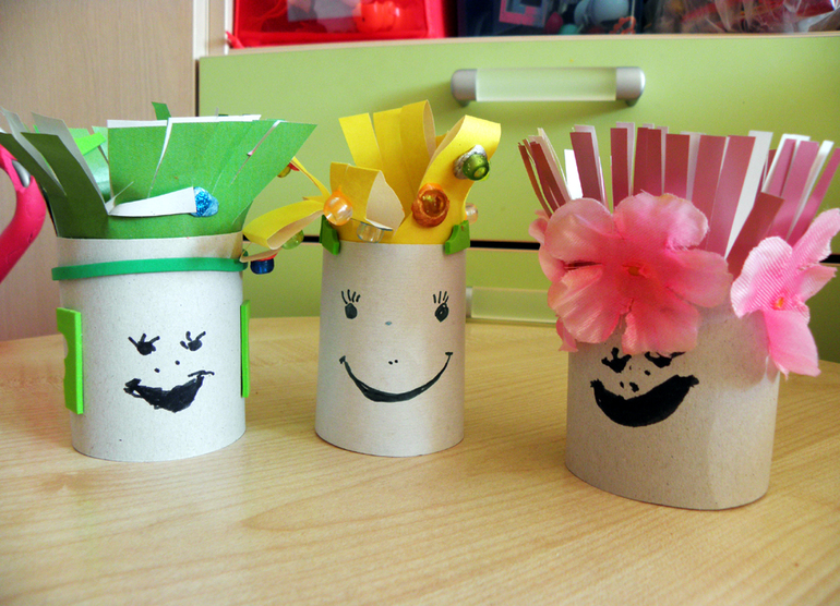 Во-вторых, оказалось, что и из бумажных волос можно что-нибудь интересненькое придумать, вот такие поделки вышли: