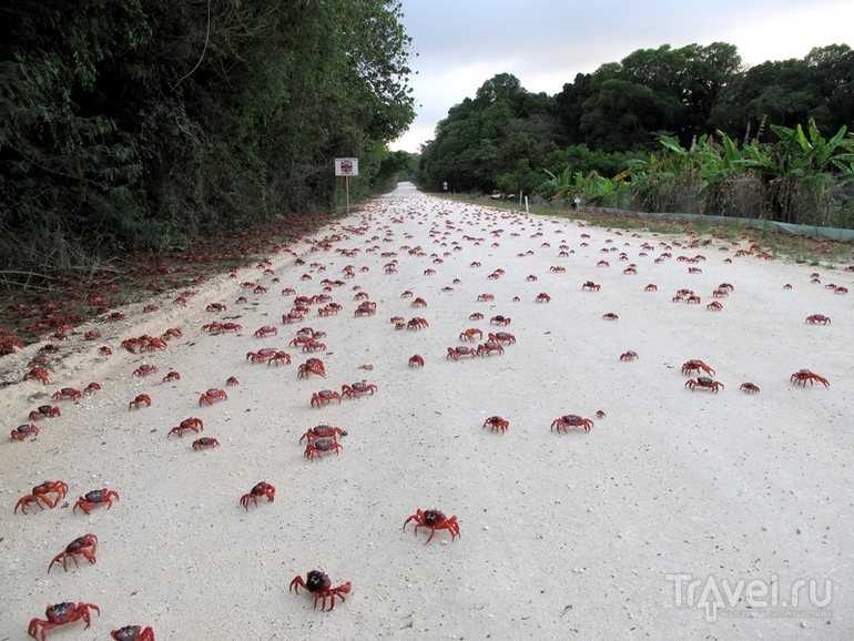 Детям надо непременно рассказать о таком впечатляющем событии в Австралии как миграция красных крабов, которые в ноябре-декабре мигрируют из одного места в другой.![]()