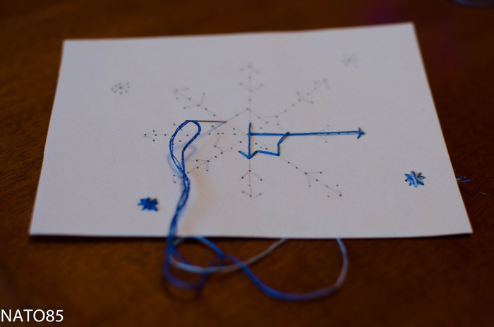 Еще одну снежинку мы решили вышить и подарить в качестве новогодней открытки!