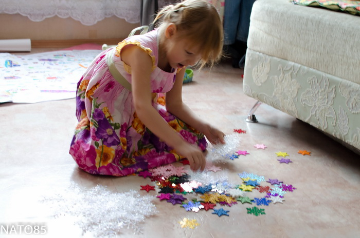 Наверное для нас сейчас эти занятия это возможность вспомнить и перетрясти бесчисленные залежи добра в доме))) С приходом зимы мы снова открыли для себя термомозайку, в разных вариантах использования! Сегодня мы решили использовать ее по правилам - собираем снежинку.